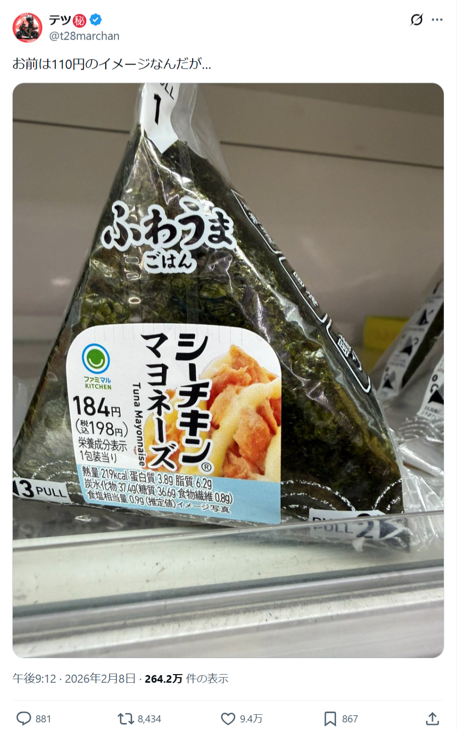 俺の記憶ではツナマヨは110円で鮭とか明太子とか比較的高いやつが160円なんだがいつの間にこんなことに