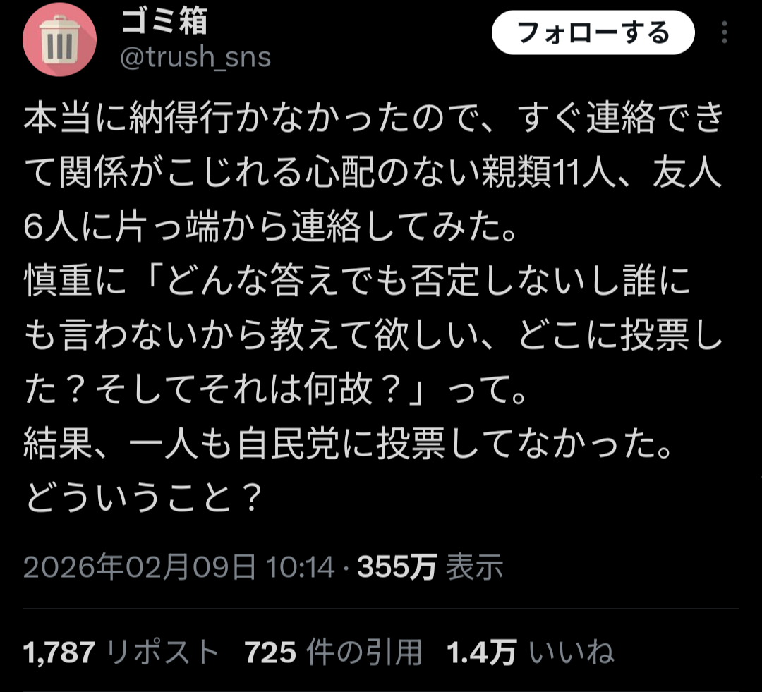 — ゴミ箱 (@trush_sns) February 9, 2026