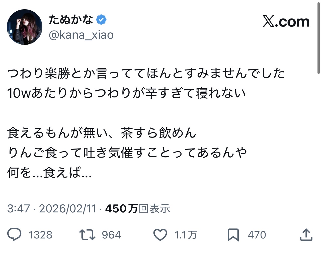 — たぬかな (@kana_xiao) February 10, 2026