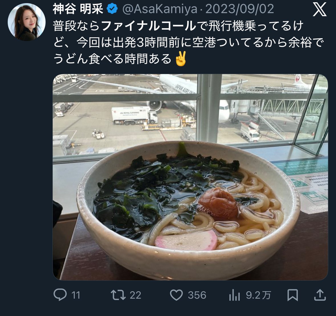 飛行機に乗る時乗り慣れてないからそんなギリギリにならんようにしたりするけど、乗り慣れてる人は逆にギリギリまで過ごすという話なんかな