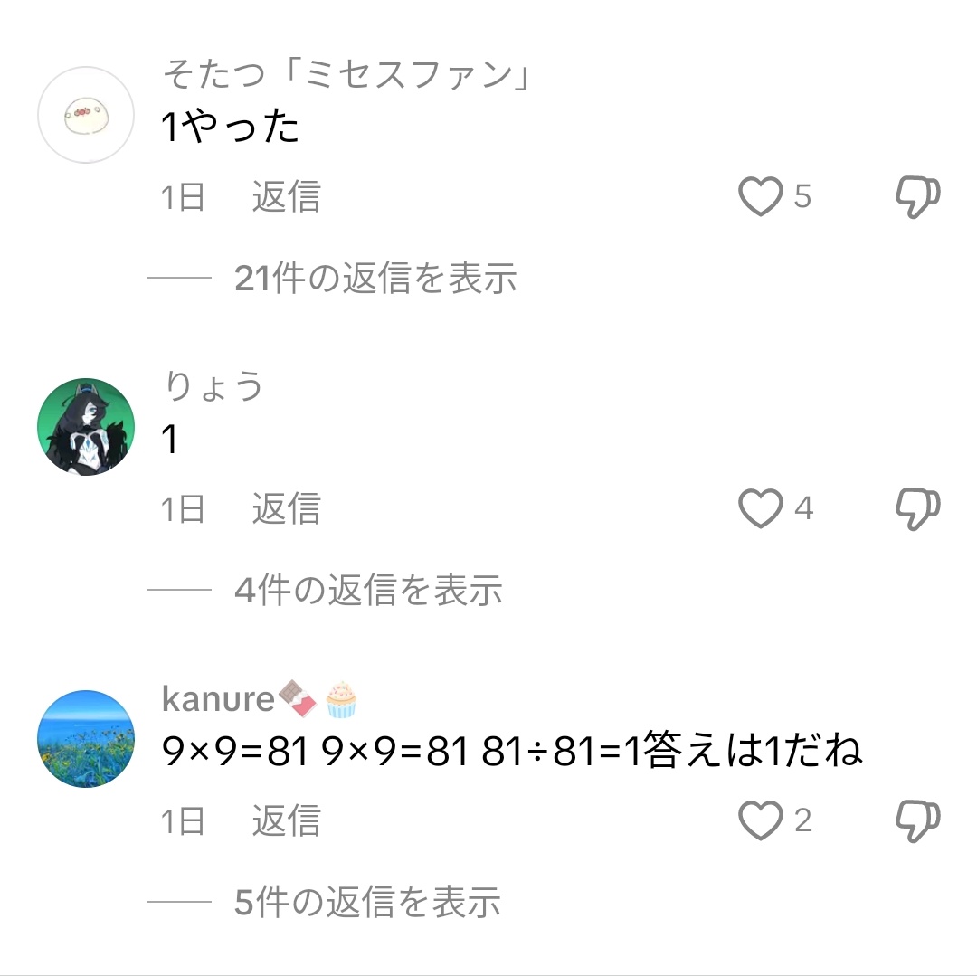 あと「1と誤答した理由」がわからない奴もいるみたいだけど、そいつも同レベルだ