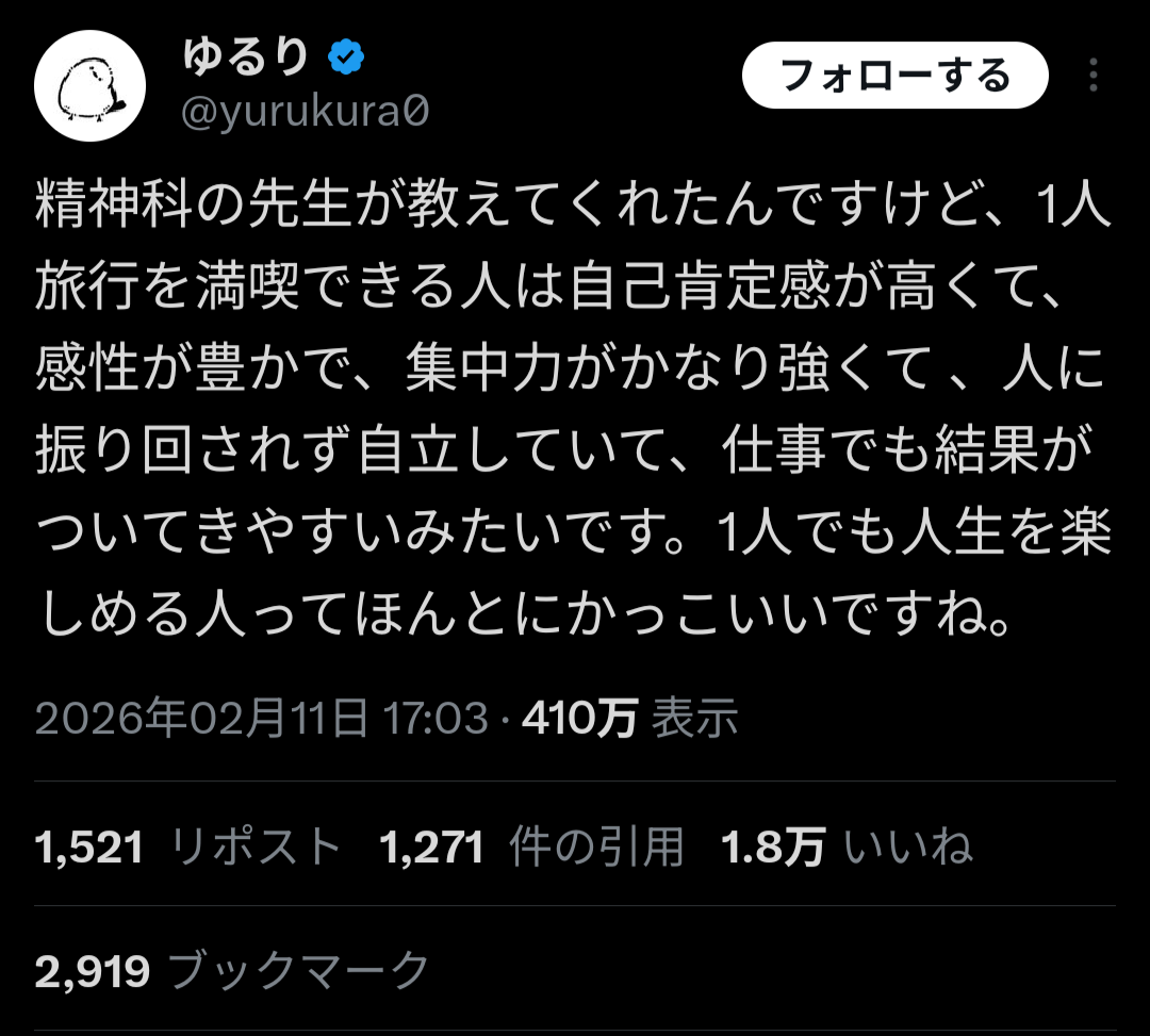 ひとり旅の方が10000万楽