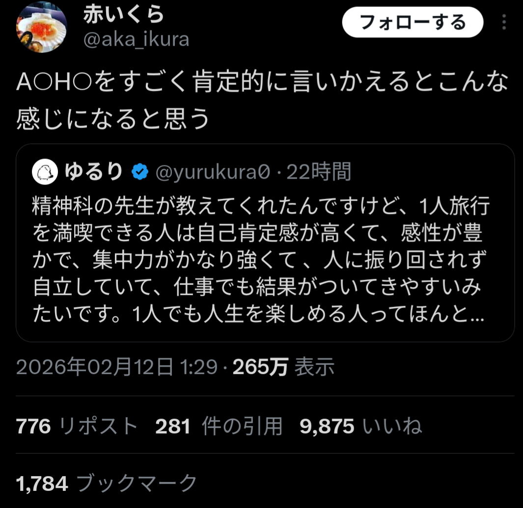 あえて一人で行く旅行は意味合いが違うから勘違いしない様に