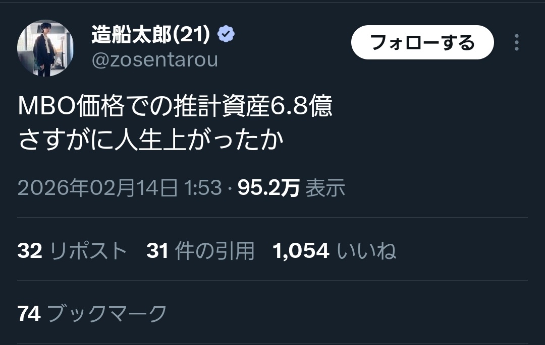 株買ったらすぐXでポストして買い煽りしてたよな~こいつ