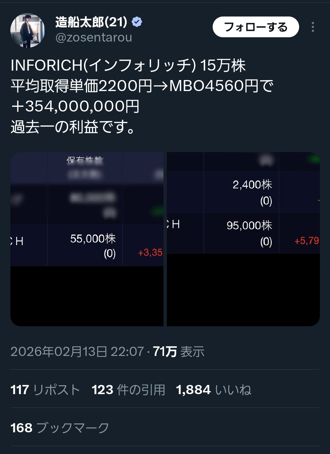 にしても、インフォリッチに15万株は尋常ではないぶっ飛んだ投資方法だと思う