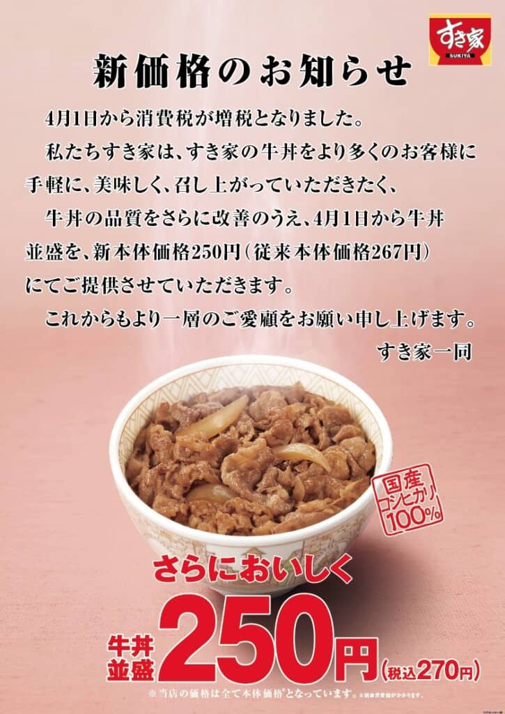 ほんの少し前までは同じ値段で牛丼+味噌汁だったのに