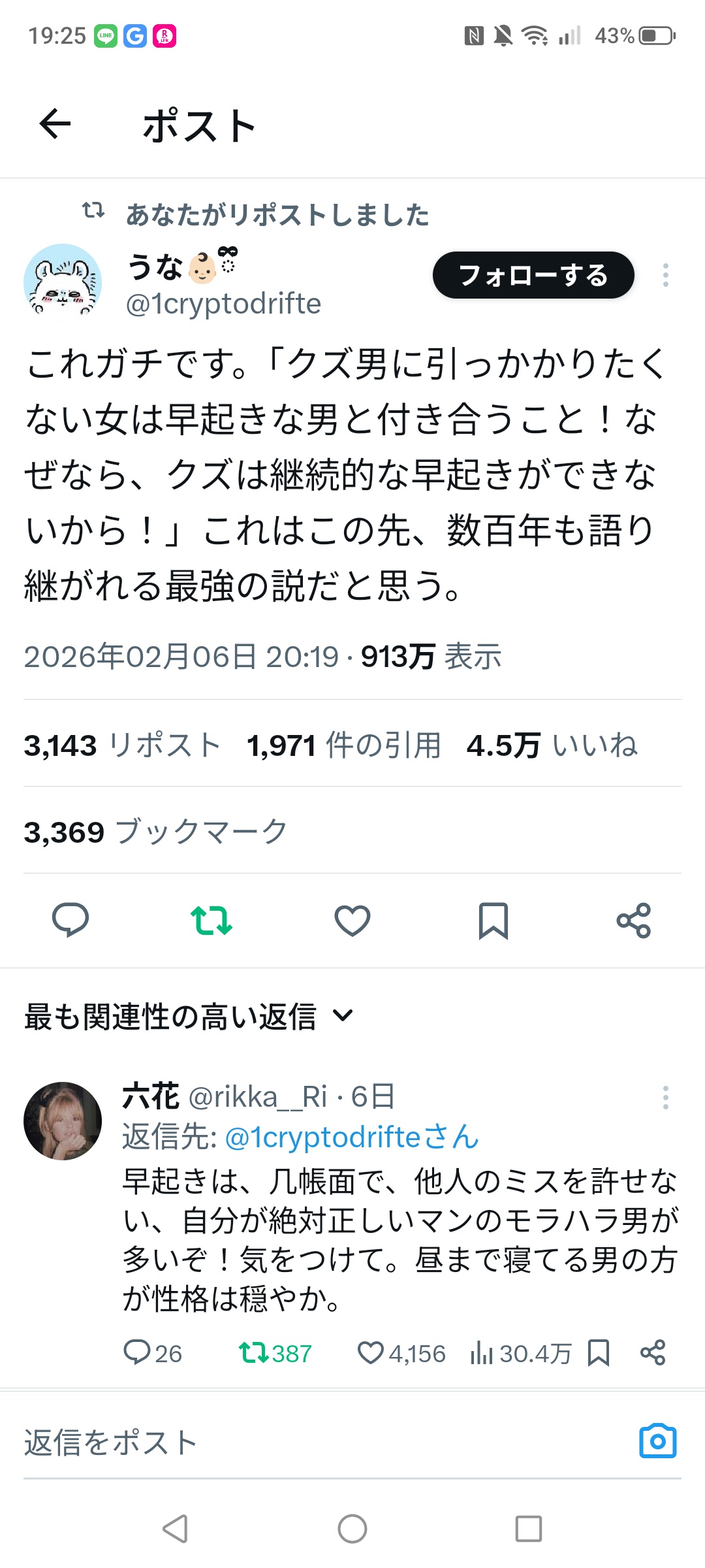 そういうのに逆らって早起き出来てしまう男はモラハラ体質