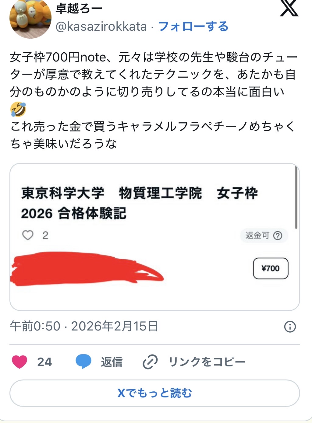 女子枠700円note、元々は学校の先生や駿台のチューターが厚意で教えてくれたテクニックを、あたかも自分のものかのように切り売りしてるの本当に面白い🤣