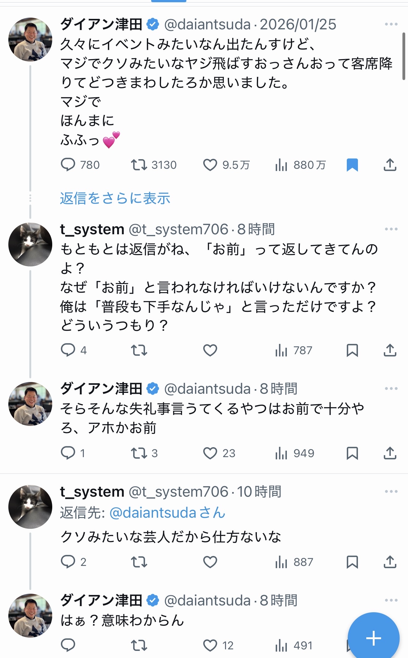 芸能人?が相手だからって、碌に知らない人に失礼な絡み方する人の方に問題有りそう