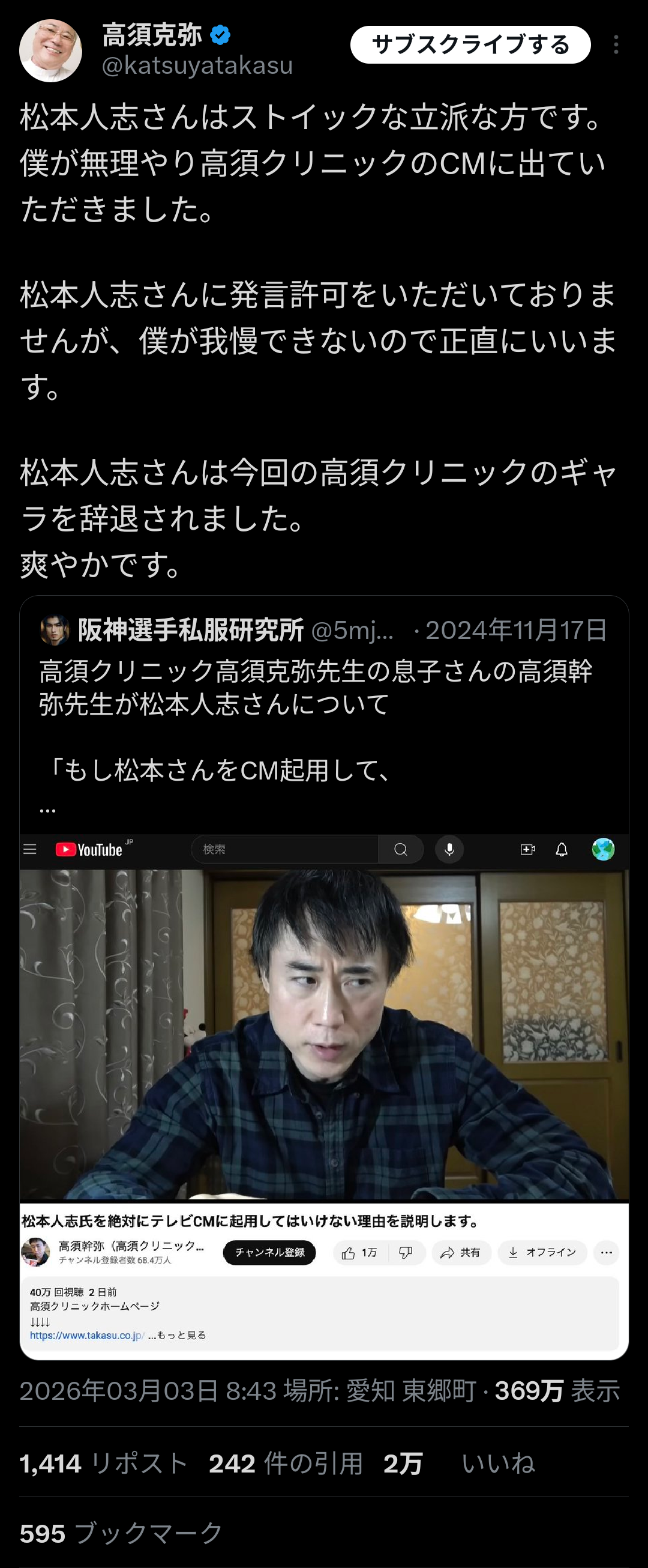 松本じゃなかったら炎上してるだろこれ