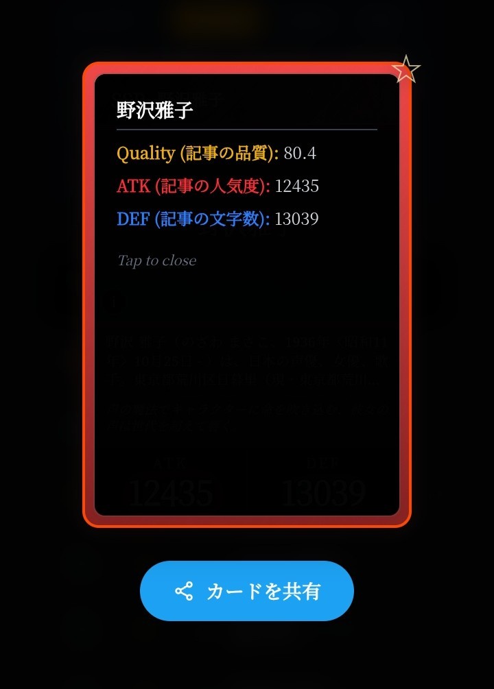 もしかしてWikiの内容量や画像ありかどうかで能力値決まるんかな