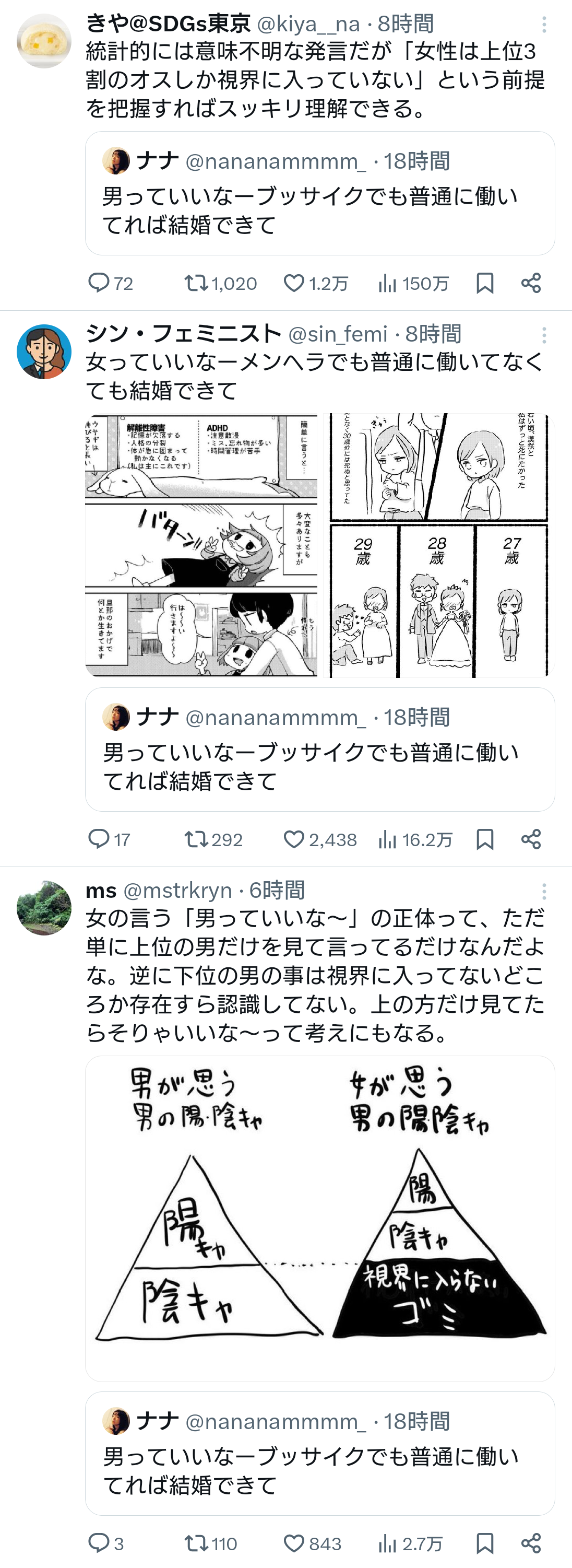 これに関しては普通に働かなくても結婚できる女て言われたら反論できんやろ