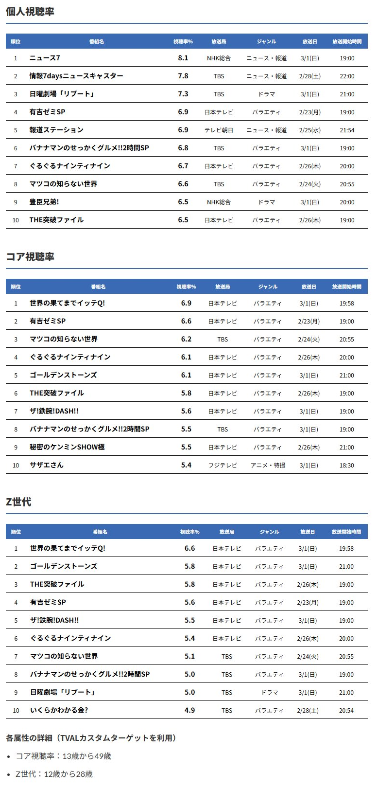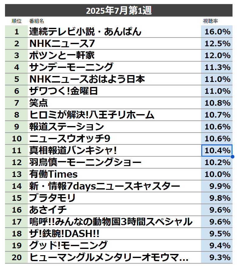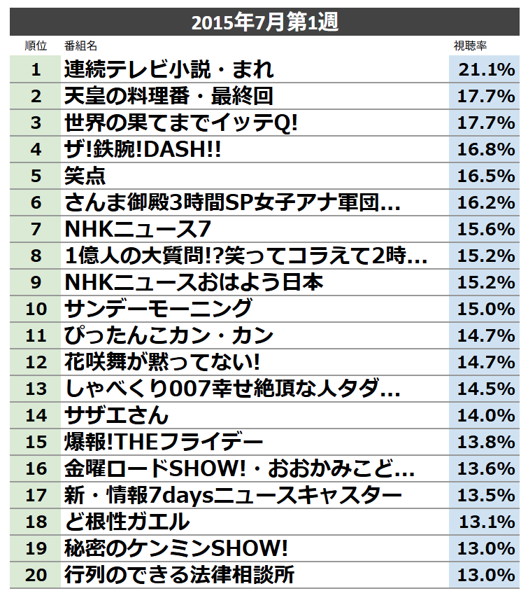 20年前は20%あったサザエさんが今では7%くらいになってるのがテレビの影響力の低下が分かりやすいな
