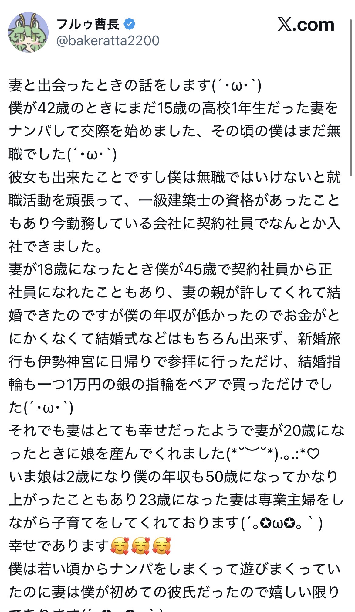 僕が42歳のときにまだ15歳の高校1年生だった妻をナンパして交際を始めました、その頃の僕はまだ無職でした(´・ω・`)… pic.twitter.com/5AyW4fe3E4