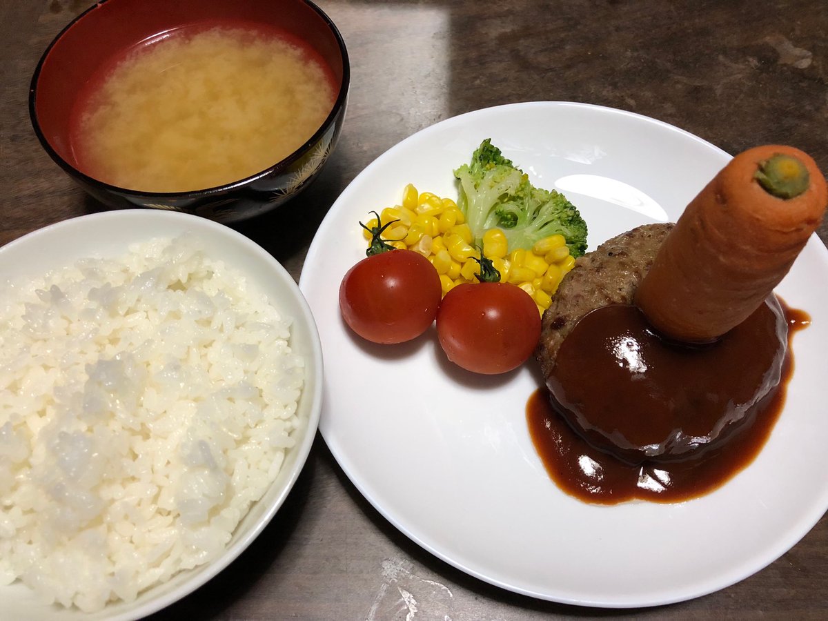 食べるときは飾りを外して、ナイフで人参をスーッと切り中のソースをハンバーグと付け合わせに絡めて食べる