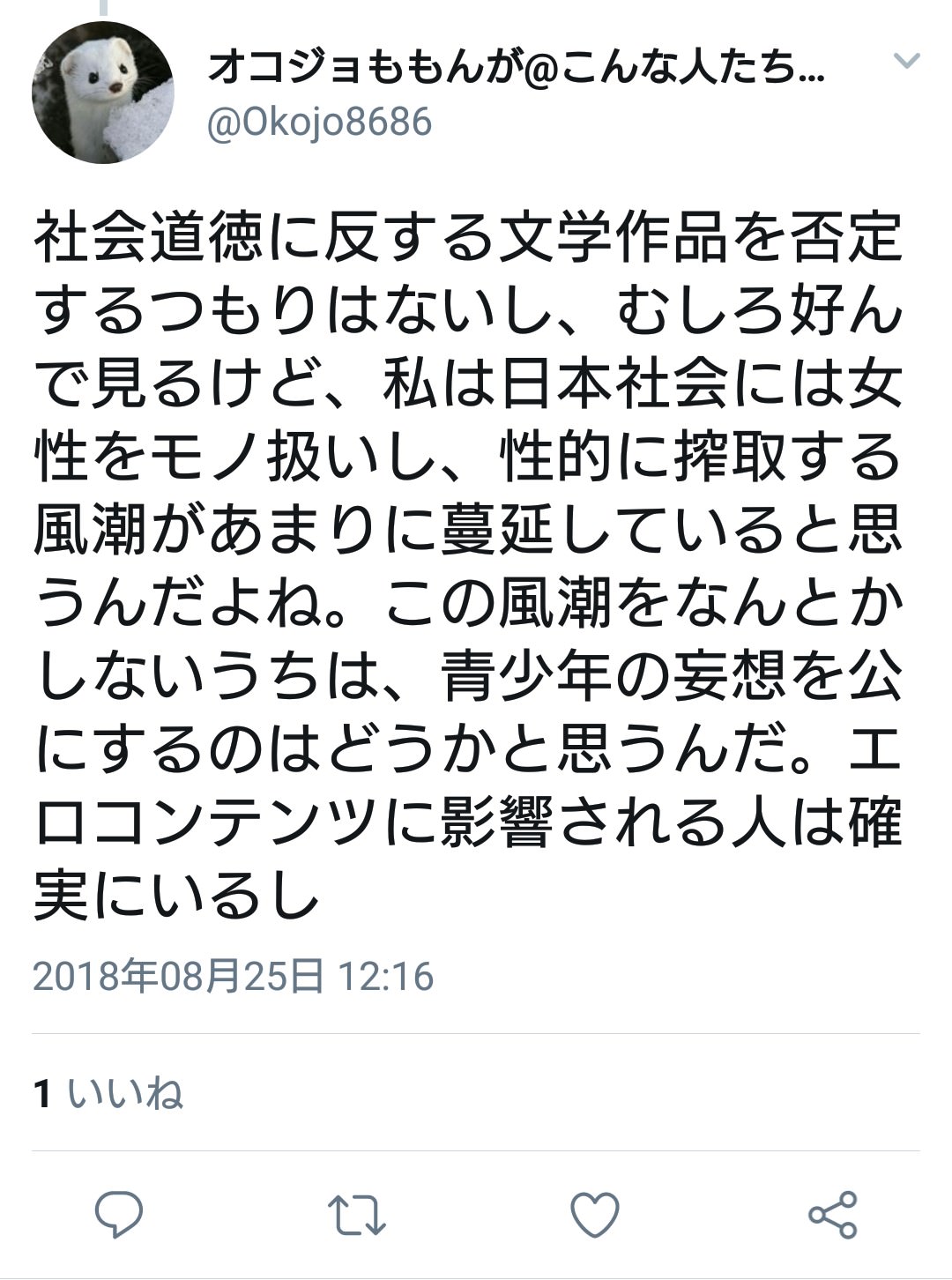割と真剣に、「性的消費!女性軽視!」って叫んでるやつに聞きたいのが、二つ目はともかく一つ目の否定は、親(というか先祖代々)がそういうことして今の自分が産まれてきてるってのわかってんのかな?って思うわ