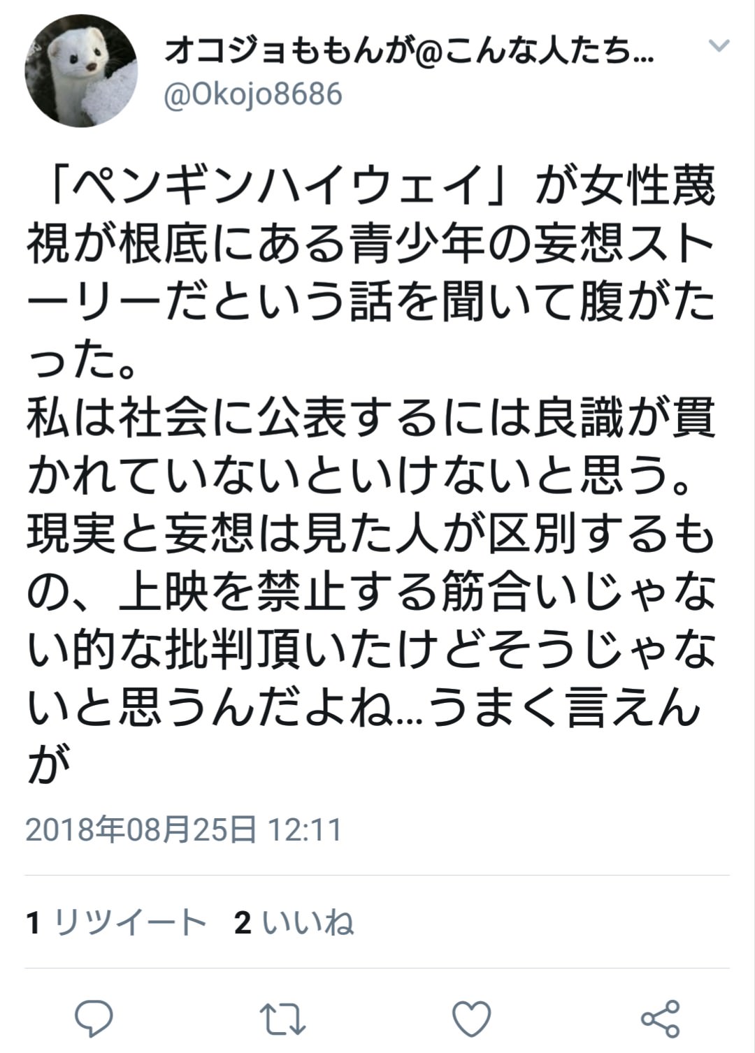 ペンギンハイウェイが女性蔑視だっただけで「アニメ邦画無理!」とアニメ邦画全般を無理と言ってる辺りアレだよね