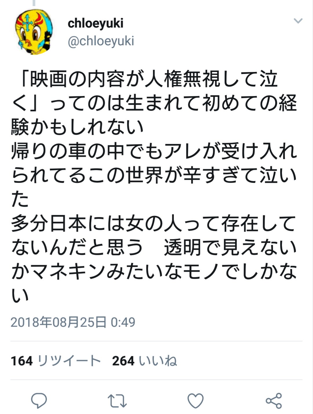 たかだか創作の一作品の内容に不満がある程度で延々と泣いたとかツイートとか大の大人がすることと思えん。