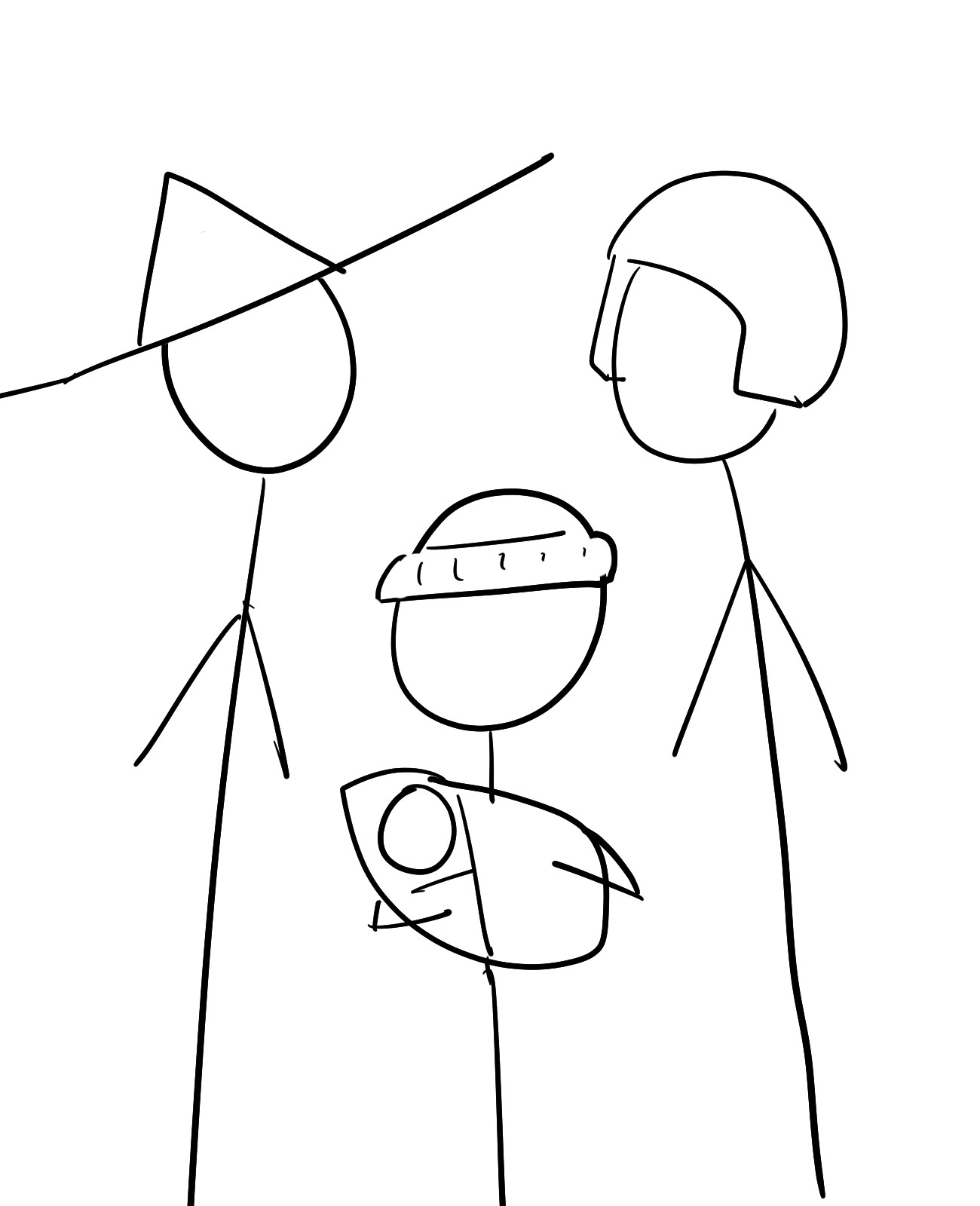 帽子被ってる奴と赤ちゃん抱えた捻りはちまきの奴とおかっぱの女の4人組