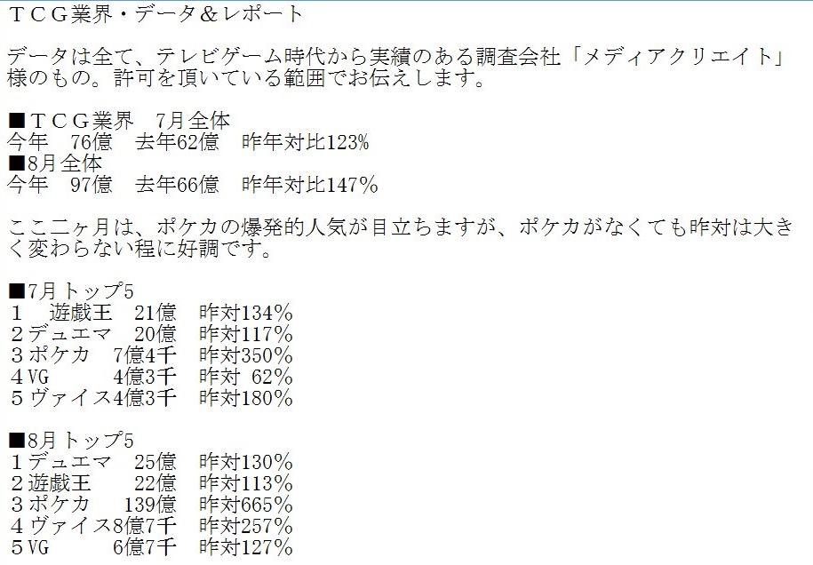 遊戯王121億、デュエマ121億、ポケモン40.5億やで