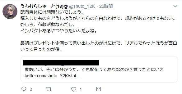 勝手に買って勝手に贈与するんやから自由じゃね?