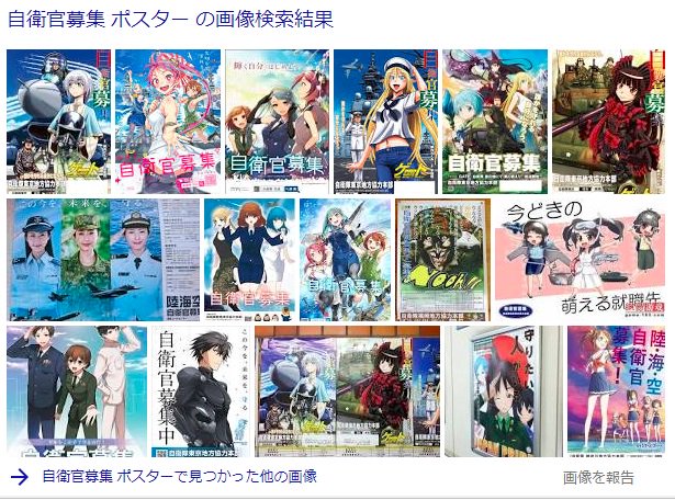 あとは他国と違って日本は名目上は軍隊のない国だし軍隊とか兵士とかを極度に嫌う国民性だからバリバリの兵士や兵器を街中のポスターで堂々アピールするのはそれはそれで問題ってのもあるんやないか