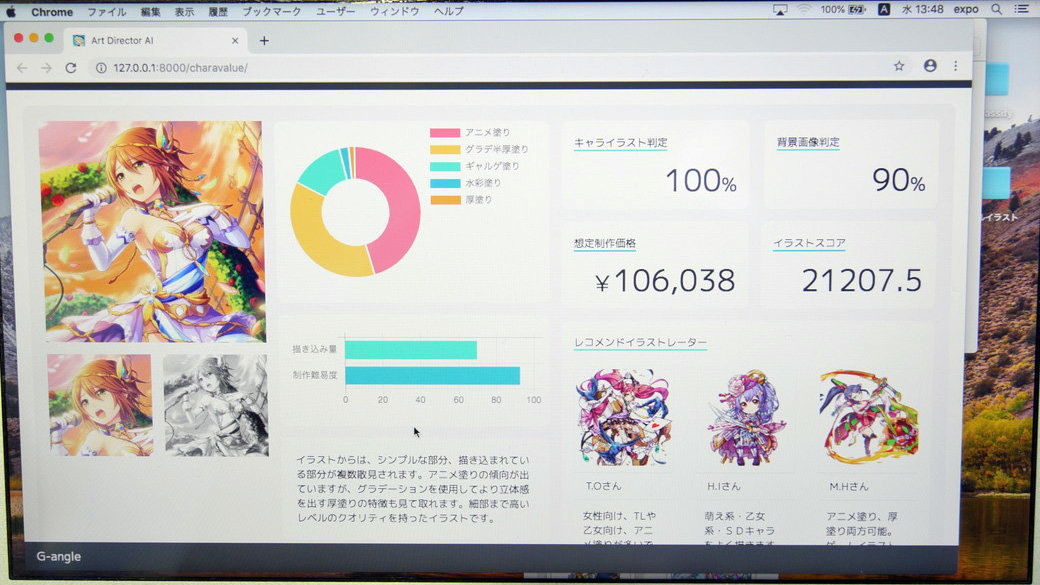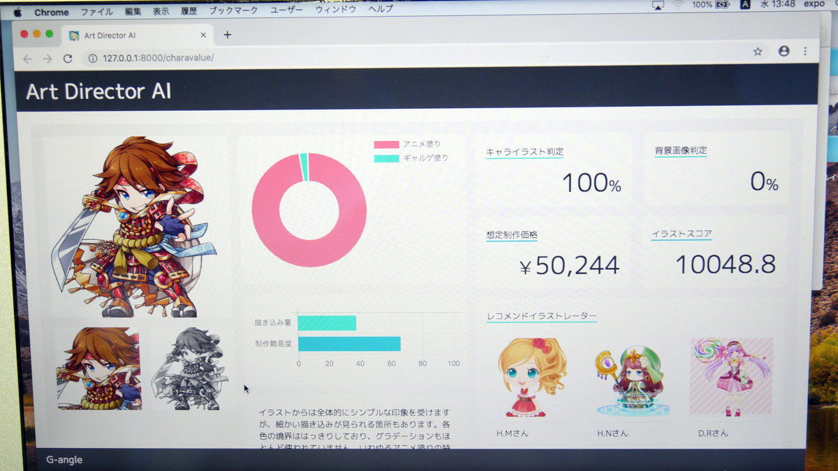 イラストの価格をAIで評価するシステム「アートディレクターAI」を作ったのは、ゲームメーカーなどからコンテンツを受託制作するジーアングル(東京都渋谷区)。版権イラスト制作などで、年間1200件の制作実績があるという。