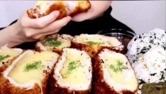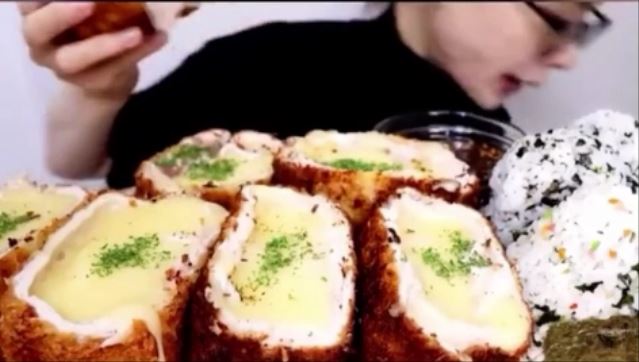 机の上に並べられた大量のチーズとんかつを食べるという動画。音の咀嚼音やカリカリ音はリアルに録音されており、他の動画でも数十万、多いときで100万再生以上のヒットを叩き出している。