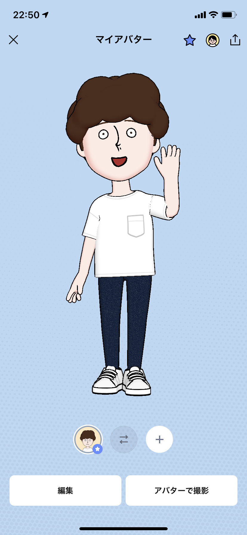 ラインのプロフのところにアバターってとこあるからそこをタップするんやで