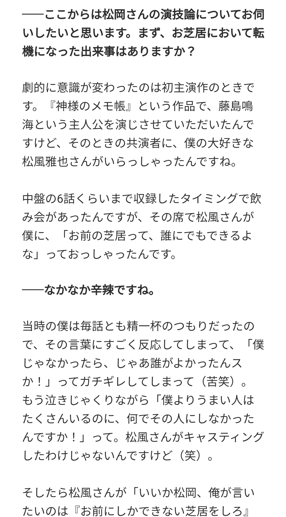 でも松岡くんって色んな演技出来立て凄いと思うわ