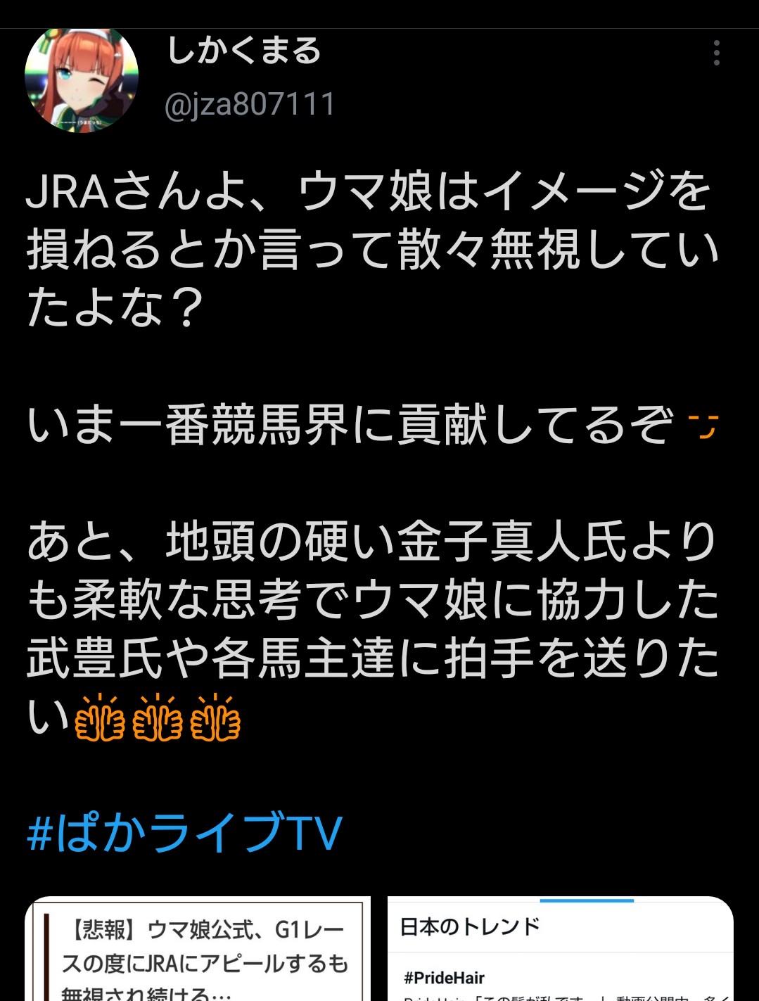 あのアニメは自分で色々調べてリアル競馬にも興味持つ作りしてる