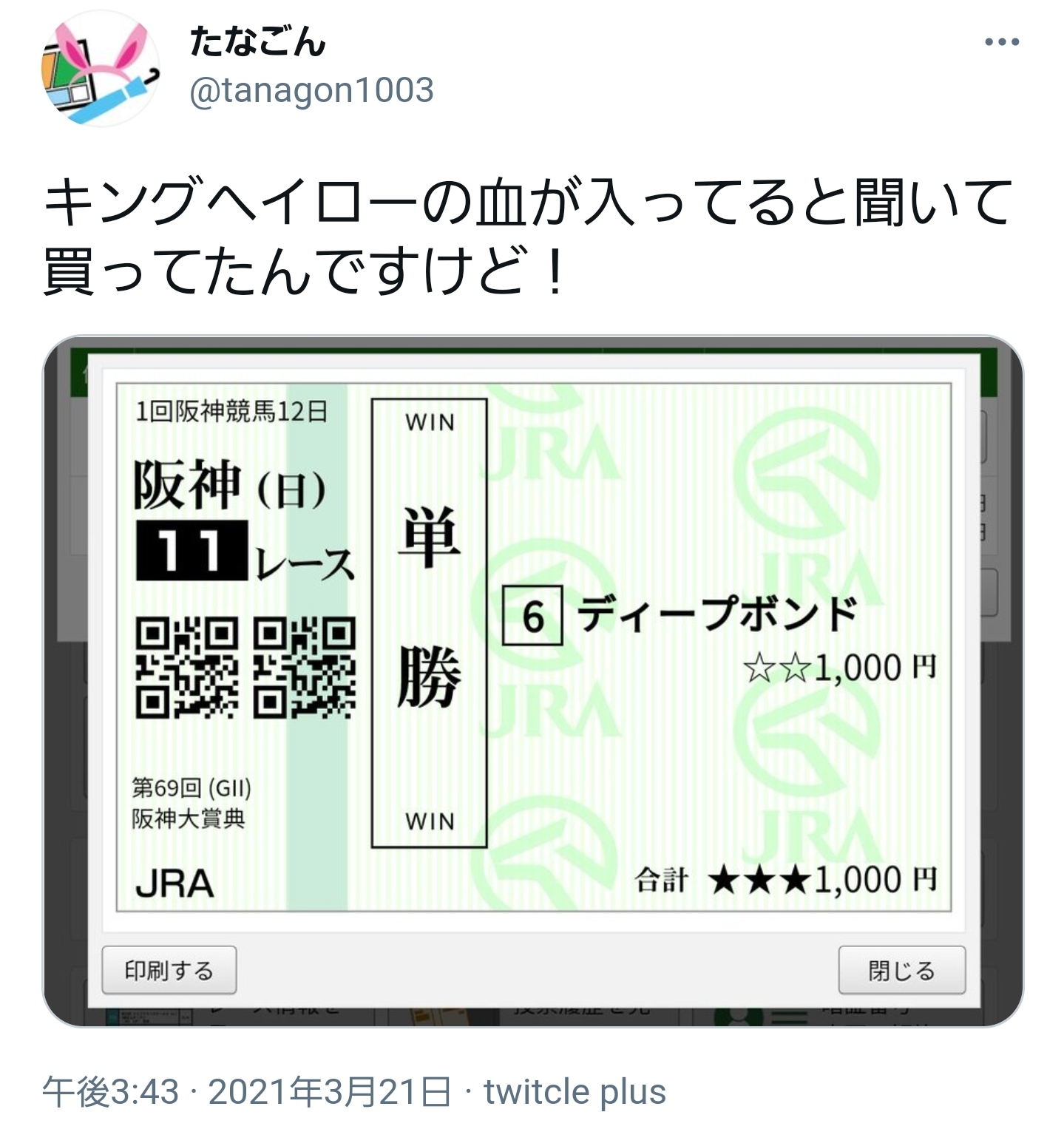 ネットで馬券だけ買おうか思とるわ