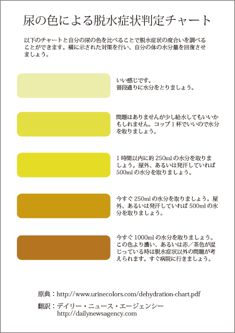 アスリートとしての生活に備え、食生活や睡眠時間の確保、尿の色に気をつけて脱水状態にならないようにしてください」とあり、