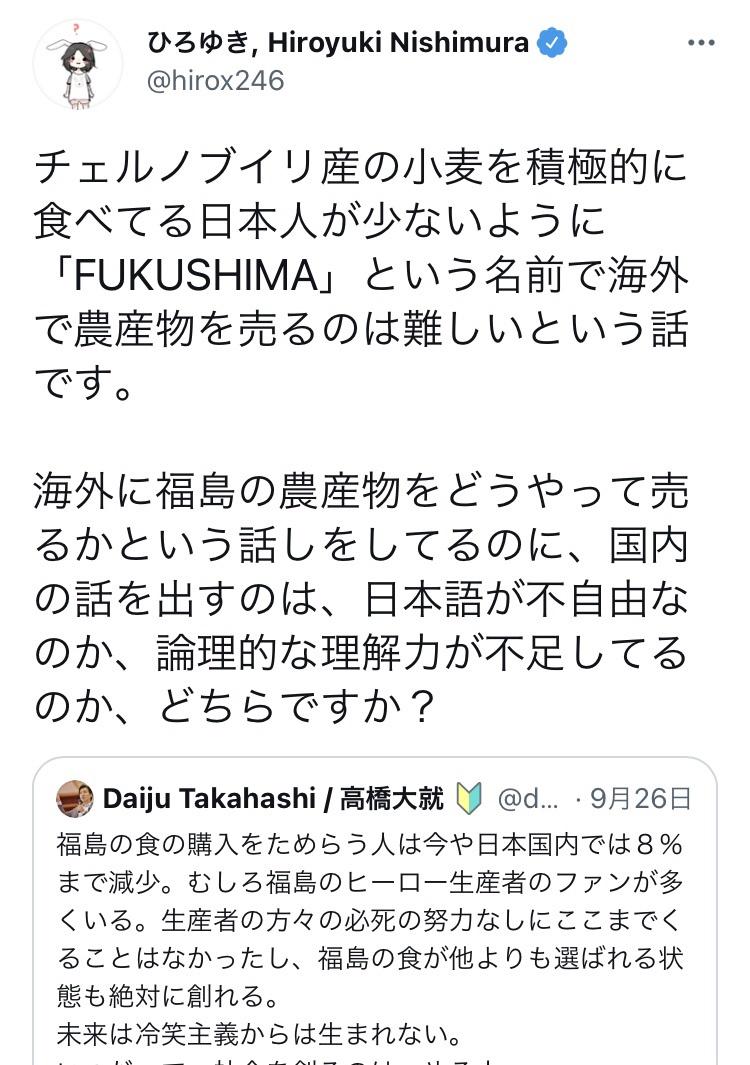 twitterで「福島産は危険だ」って言ってる奴がひろゆきに同調してんのが謎